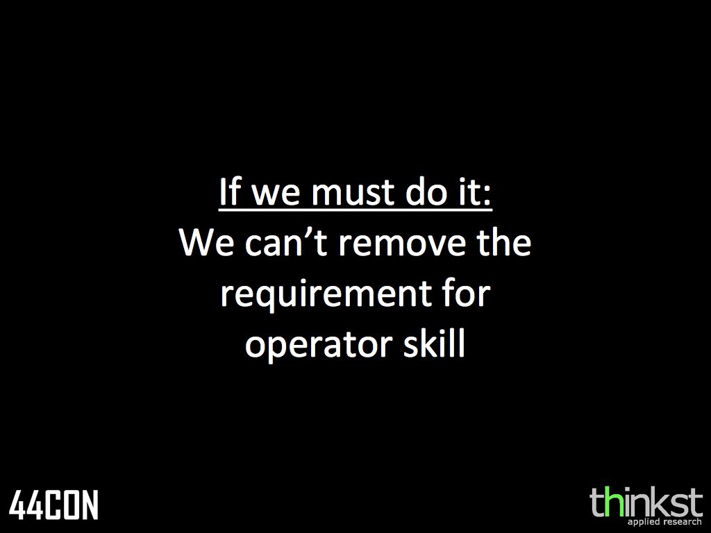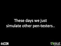 An excellent presentation. I particularly like the line”We were supposed to be emulating attackers but these days we just emulate other pen testers.”Who would think of taking a car to his mechanic and instructing him on what tests to run or which spanners he can use. Nothing will change until Pentesting companies are prepared to say no to clients waving cheques at them.
