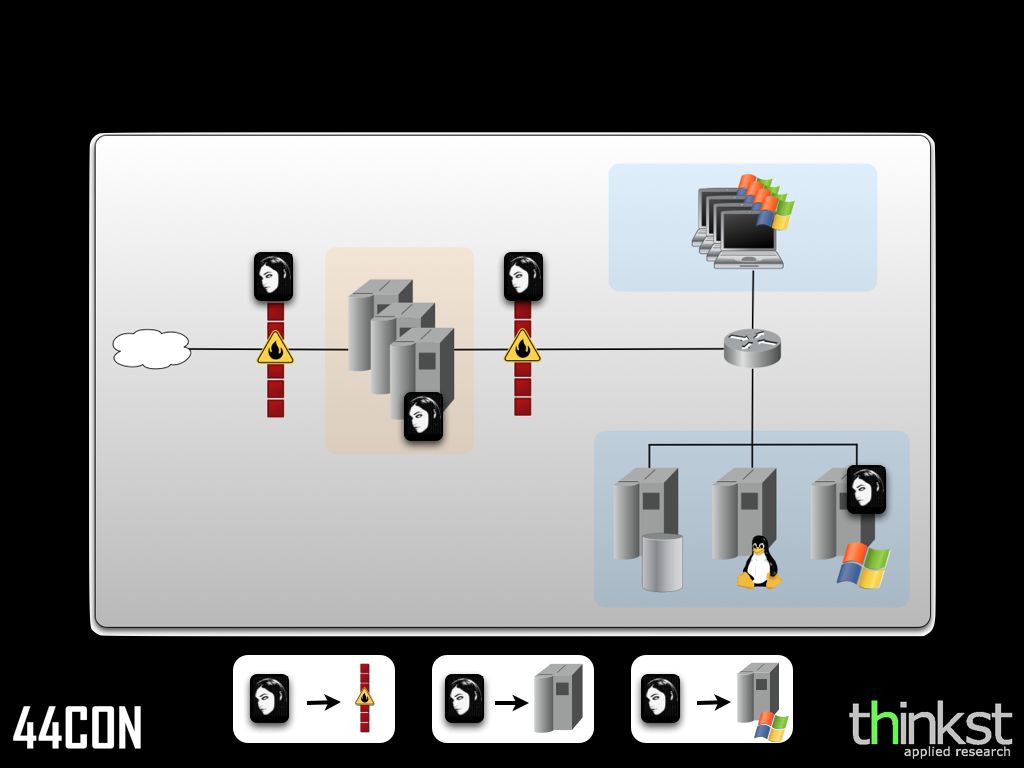 Just finished reading your slides and, definitely, you have a very interesting point of view. After each and every pen-test, you can listen professional pentesters often discussing about how much could the client networks be security improved, and almost always they (better said, we) limit themselves to the scoped scenarios, systems, applications, as per the client time restrictions, budget or, worse scenario, their understanding or their own IT infrastructure. We have the Technical knowledge, but we limit ourselves to either exploit some, not all the weaknesses we find, or to check only specific scenarios, forgetting to give a holistic approach, blaming the one who pays for not investing more and not taking any responsibility, “we don't manage the network/app, we just break it”. The problem comes when the ones who get specialized in OS, application, programming language and business logic for security testing, are not the ones who will protect the whole thing, but just point with their finger to the weakness. Really worth a thought, or two,