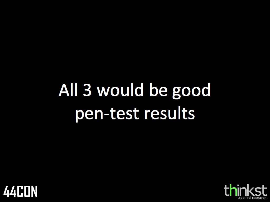 So its possible to have a pen-test, be happy with the results, but still be perfectly ownable.