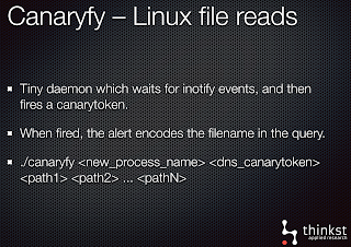 Canaryfy) that will compile and run on Linux. Generate a token, then use it to watch a file. If the watched file is ever read.. you will get your notification..