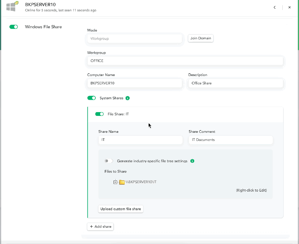 If your Canary is setup with a “Windows Personality”, you are able to trivially join the Canary to your domain, and a single toggle will turn on Windows default hidden shares.