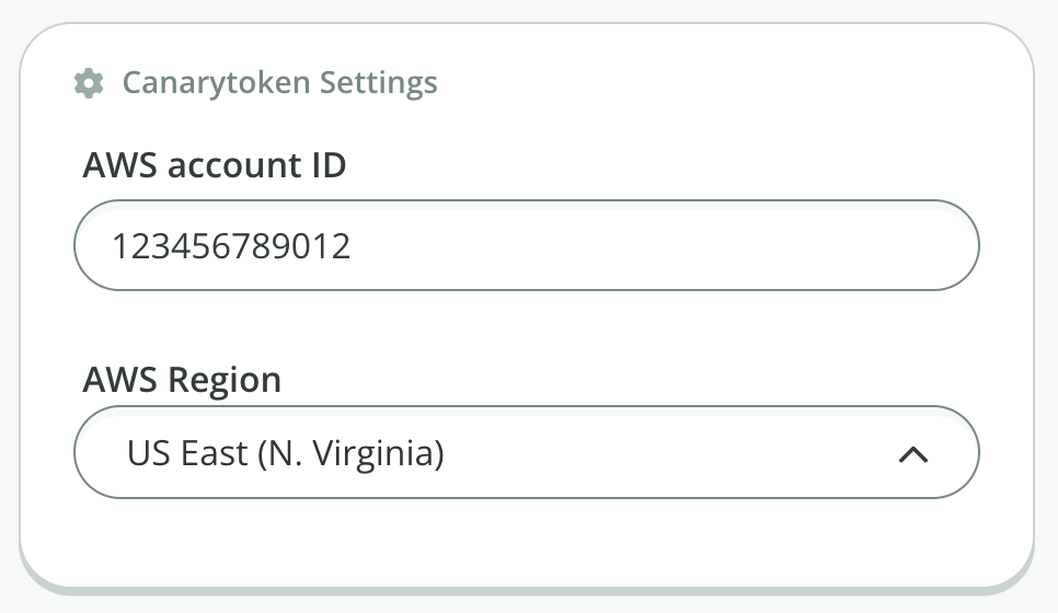 Under the “Canarytoken Settings”, enter the AWS account number and select the region (the region must already be enabled in your account, review your list here):